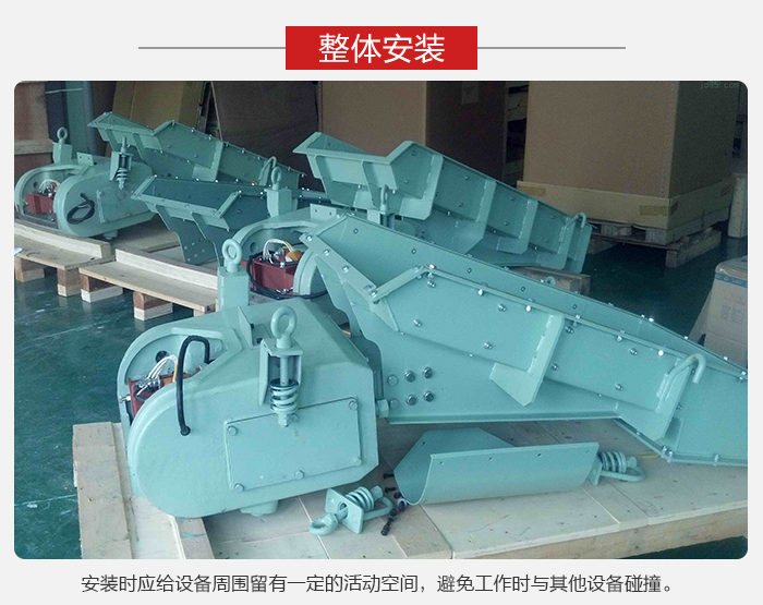 電磁振動(dòng)給料機(jī)應(yīng)整體安裝,一般不允許拆卸,也不允許在機(jī)器上固結(jié)任何剛性附件。安裝時(shí)應(yīng)給設(shè)備周圍留有一定的活動(dòng)空間,避免工作時(shí)與其他設(shè)備碰撞,一般長(zhǎng)度方向的空間小為 50 mm,寬度方向?yàn)?25 mm。