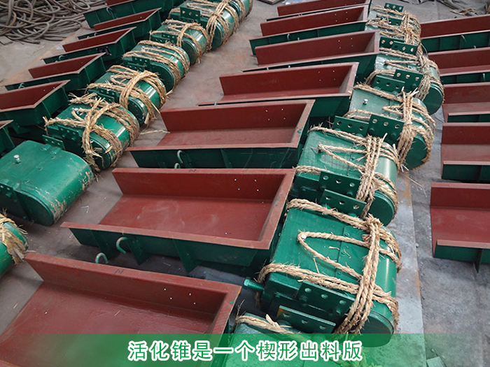 活化錐是一個(gè)楔形出料版,小頭向上,固定在共振體上,由于激振器產(chǎn)生的激振力的作用,活化錐在振動(dòng)方向上和共振體一起作近似于簡諧振動(dòng)。通過活化錐產(chǎn)生向上的力,將水平振動(dòng)高效地傳遞到頂部物料,振動(dòng)力所產(chǎn)生的擾動(dòng)能量松動(dòng)物料使其下落。