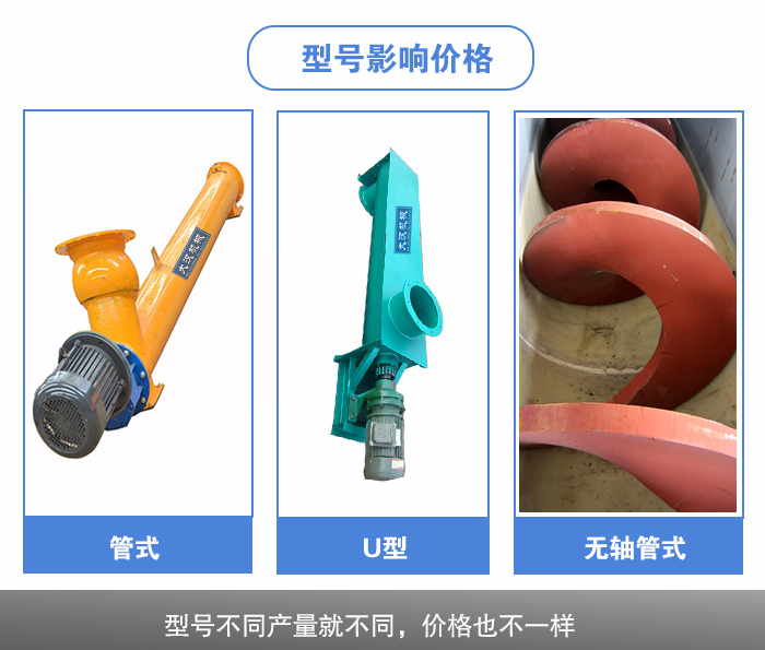 管式螺旋給料機(jī)分為管式、U型及無軸管式螺旋給料機(jī)等三種類型,不同類型的輸送機(jī)有不同的型號,這些都會(huì)影響管式螺旋給料機(jī)的價(jià)格,同一類型,型號越大的管式螺旋給料機(jī)產(chǎn)量就大,設(shè)備的價(jià)格越大,產(chǎn)量越小,價(jià)格就相對低一些。