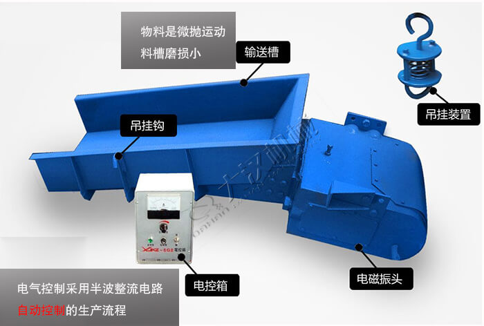 1、電磁振動給料機電氣控制采用半波整流電路,可無級調節給料量,可用于自動控制的生產流程中,實現生產過程自動化。
